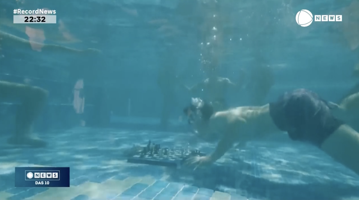 Jogar xadrez já não é fácil, agora imagina embaixo d’água. Na abertura oficial do Grand Slam de Xadrez Freestyle, na África do Sul, os enxadristas precisavam mergulhar e prender a respiração para realizar suas jogadas na piscina.